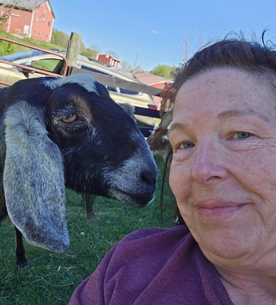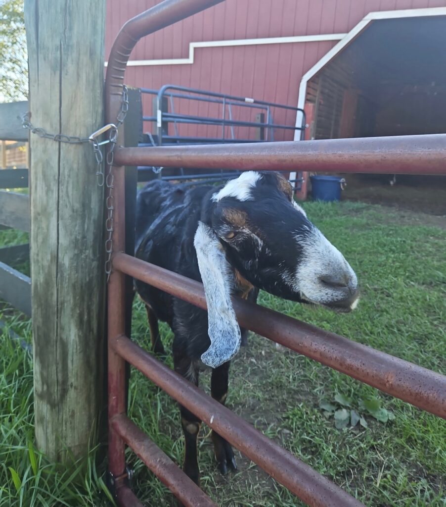 Zeke loved his friends, Tapioca and Medeba, and cried for days when they left the farm. “I’ve never heard a sound like that from a goat,” reported Sharon. Sharon took over the care of Zeke when she added her five goats to the farm.